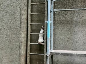 Die Katze war in die im Umbau befindliche Schleusenkammer gestürzt und zwischen einer Leiter und der Schleusenwand eingeklemmt.
