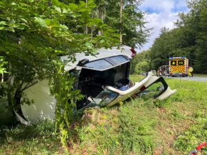 Während der Rettungs- und Bergungsarbeiten blieb die K18 für etwa zwei Stunden voll gesperrt. Am Fahrzeug entstand Totalschaden, es musste abgeschleppt werden.