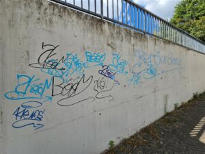 Am 14. und 15.07.2025 wurden in Kottenheim, im Bereich Turnhalle / Platz der Generationen / Sitzgruppe oberhalb vom Bolzplatz, mehrere Graffitis festgestellt.