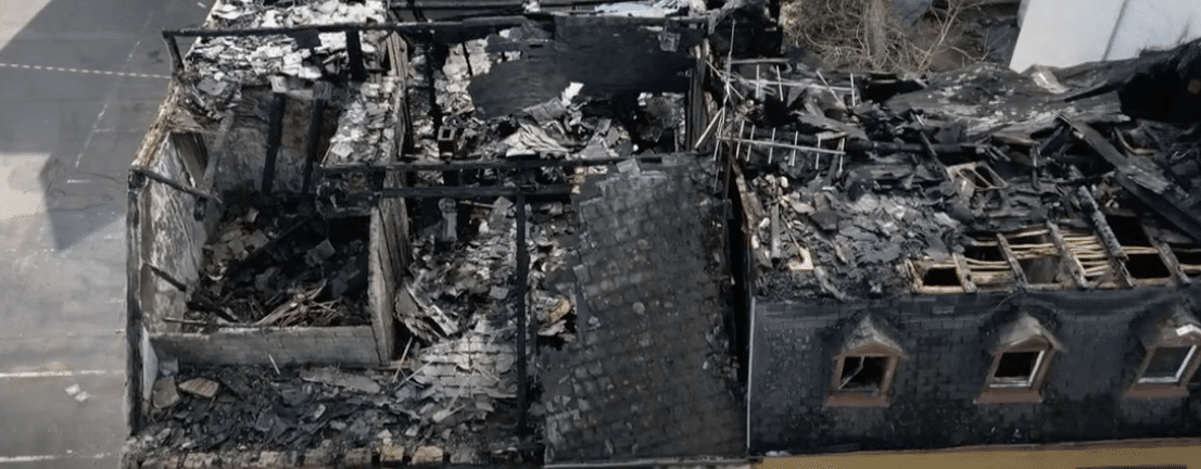 Aufgrund der Einsturzgefahr konnten die Löscharbeiten nur mittels Drehleitern von außen durchgeführt werden.