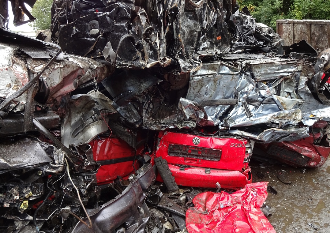 รl und Benzin tropft aus Schrottautos - Lkw-Gespann satt รผberladen!
