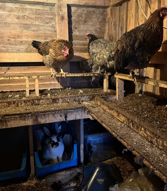 Fremdes Kaninchen im Hühnerstall