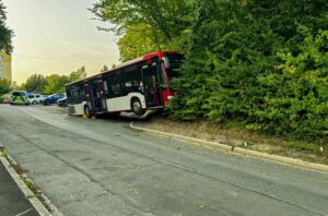 Linienbus kommt in Böschung zum Stehen