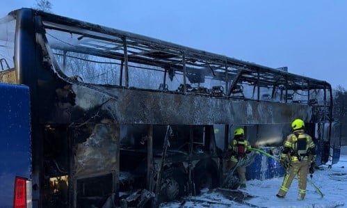 Reinigung der Fahrbahn und Bergung des ausgebrannten Busses geplant