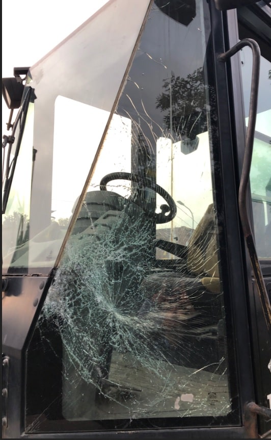 Bislang unbekannte Täter wirkten gewaltsam auf eine Scheibe der Fahrerkabine ein, die hierauf zerbrach.