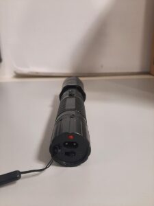 Bei der Sicherheitskontrolle fiel zuerst eine Präzisionsschleuder mit Unterarmstütze auf. Kurz darauf wurde ein getarnter Elektroschocker in Taschenlampenform entdeckt. Beide Gegenstände sind in Deutschland verboten. Sie unterliegen dem Waffengesetz.