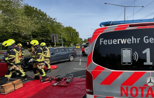 Der Verkehrsunfall in Gelsenkirchen Erle führte während der Rettungsmaßnahmen zu einer teilweisen Sperrung des Kreuzungsbereichs. Insgesamt waren rund 20 Einsatzkräfte von Feuerwehr und Rettungsdienst im Einsatz.
