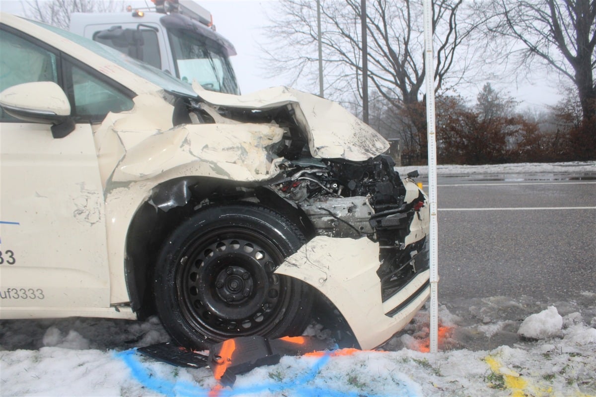 Im Einmündungsbereich kam es zum Zusammenstoß beider Fahrzeuge. Sowohl die beiden Fahrzeugführer als auch die beiden Fahrgäste im Taxi zogen sich leichte Verletzungen zu. Andere Verkehrsteilnehmer reagierten sofort und setzten einen Notruf ab.
